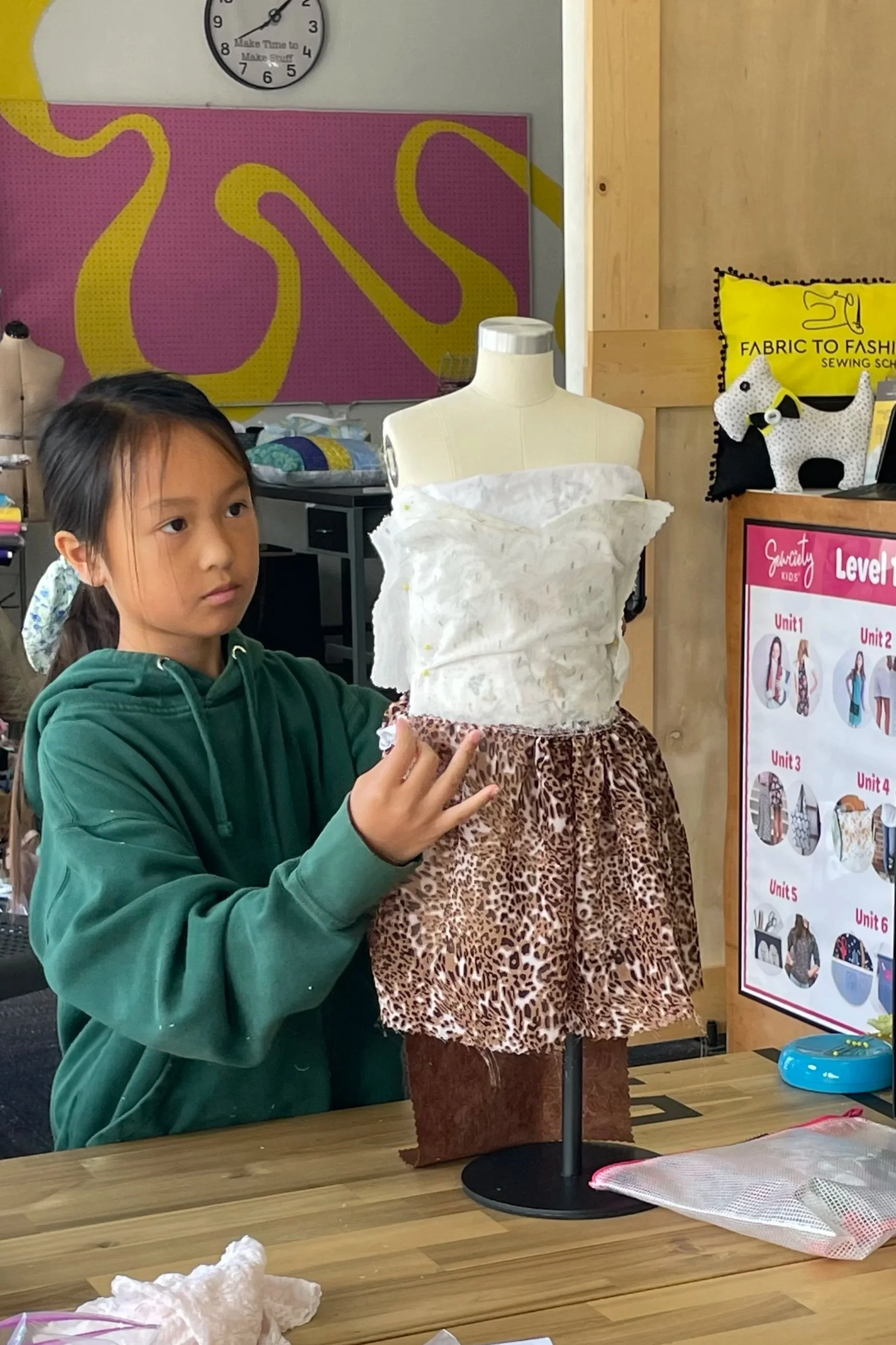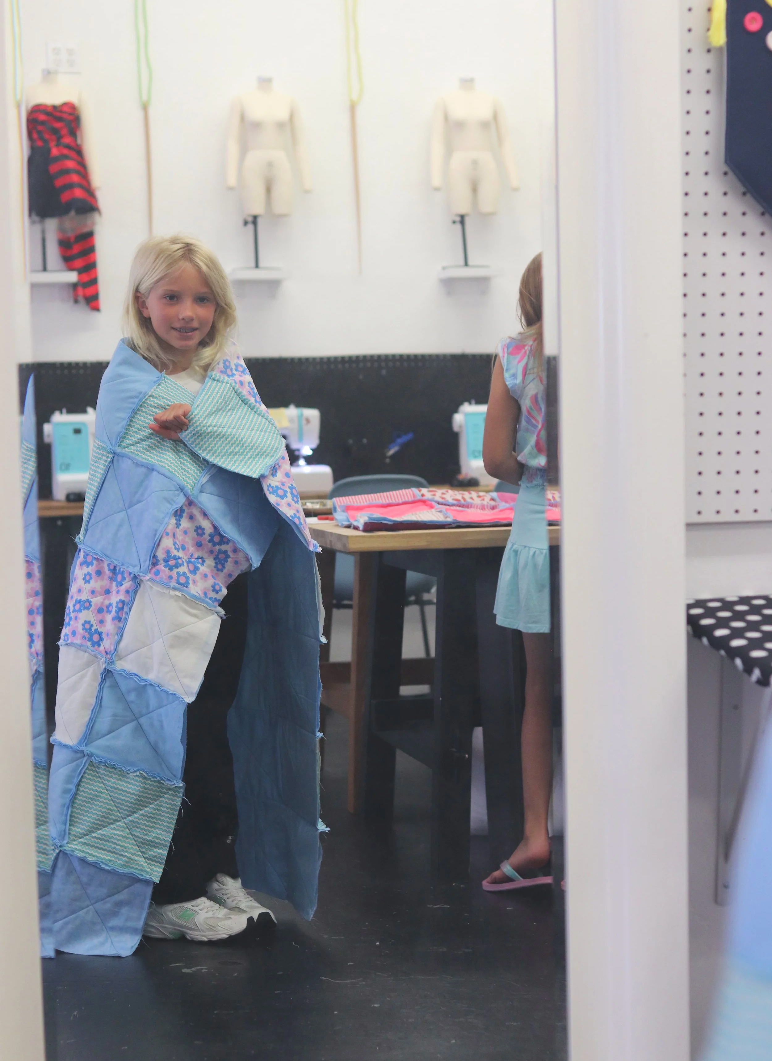 Sewing Machines, all tools, and all supplies including: fabric, zippers, thread, etc. Just show up! Unlike most camps, we keep our groups truly small with a 4:1 student-to-teacher ratio. This allows each child to receive consistent guidance and meaningful attention as they learn a real skill and gain confidence at the machine.