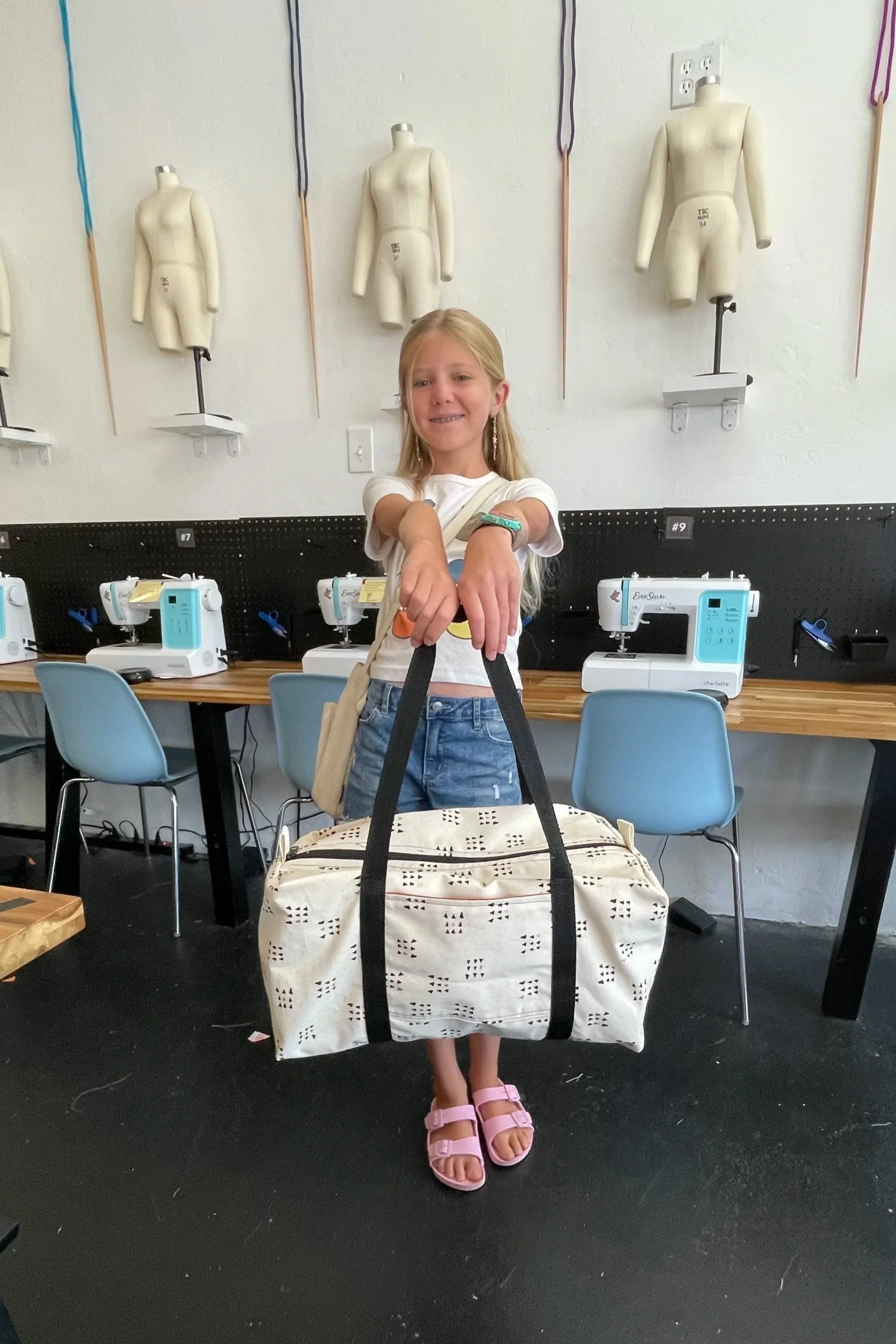 Sewing Machines, all tools, and all supplies including: fabric, zippers, thread, etc. Just show up! Unlike most camps, we keep our groups truly small with a 4:1 student-to-teacher ratio. This allows each child to receive consistent guidance and meaningful attention as they learn a real skill and gain confidence at the machine.